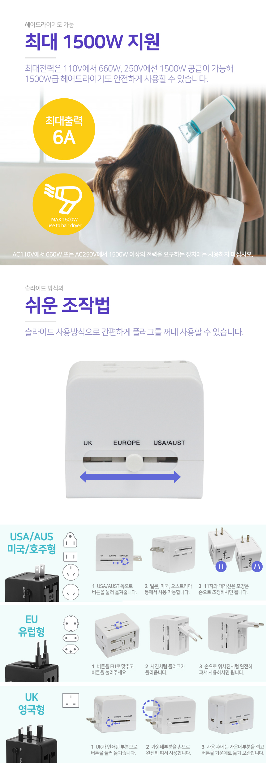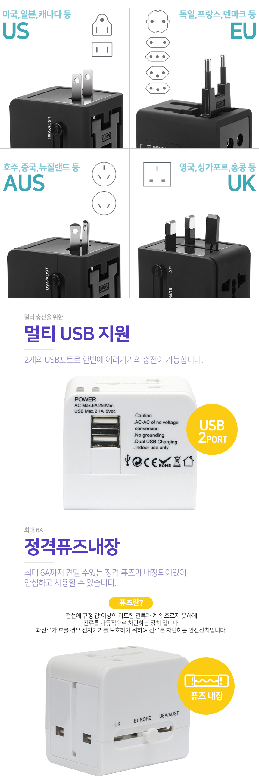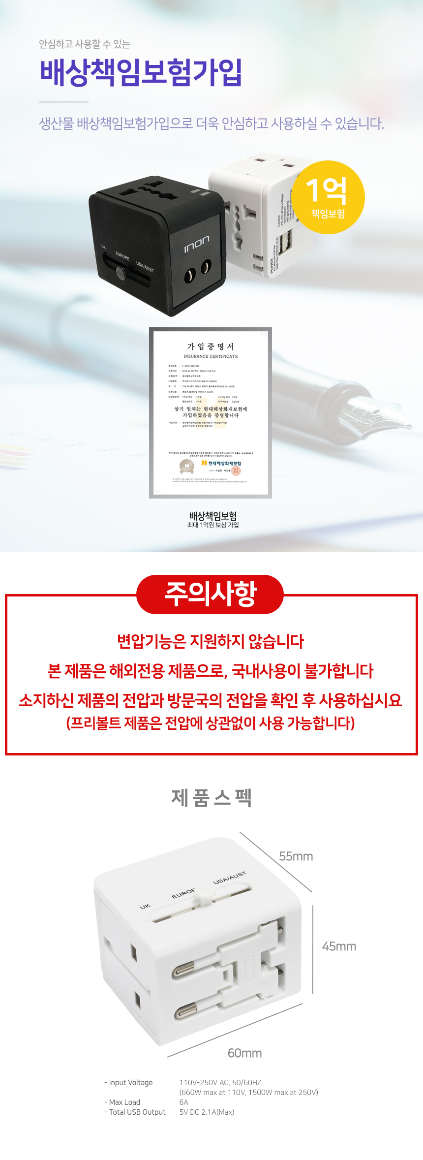• 아이논 INON USB 2포트 여행용 멀티어댑터 IN-TA210