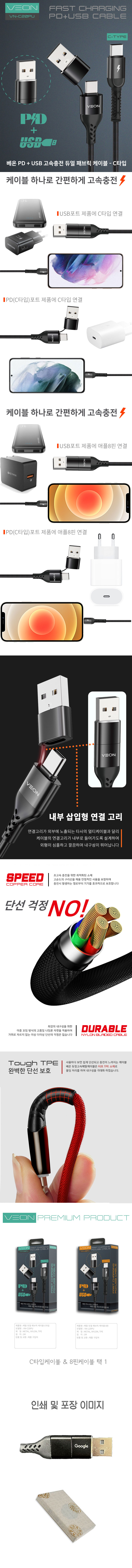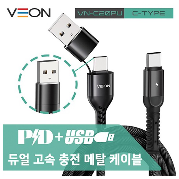 • 베온 PD+USB 메탈 고속충전 듀얼패브릭케이블 (C타입&8핀 케이블택1)