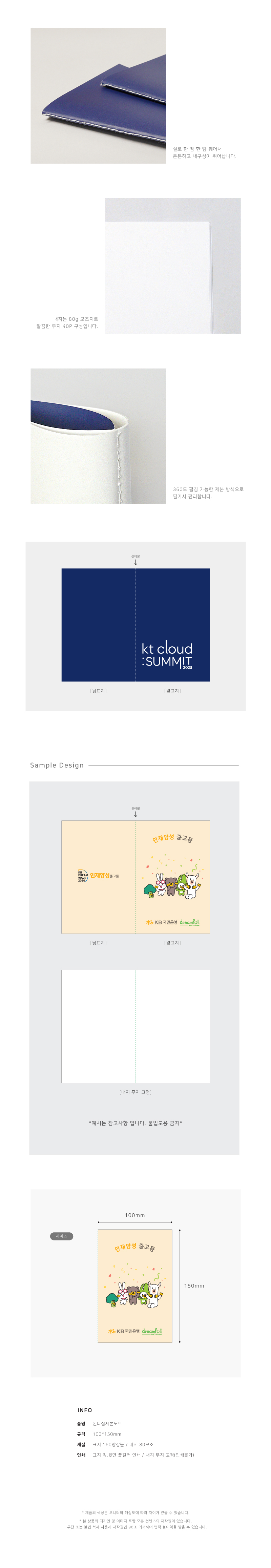 ※ 노트 40P 고정 / 표지 앞.뒷면 풀칼라인쇄 / 내지 무지고정(인쇄불가)