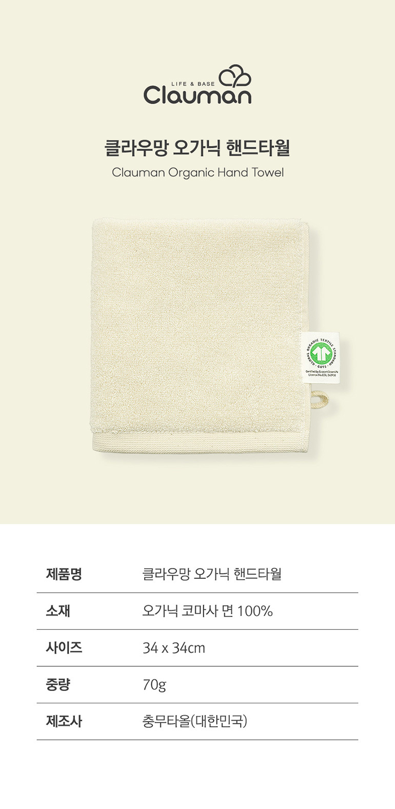 • 클라우망 오가닉매직 핸드타올 70g
