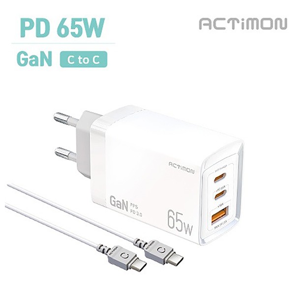 • 엑티몬 가정용 GaN 지원 PD 65W 초고속 충전기 (C+C+USB)