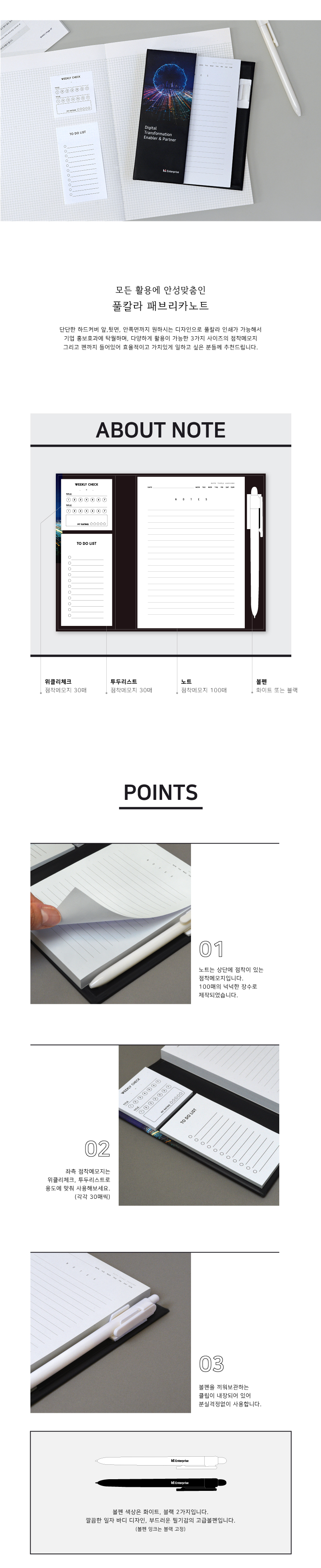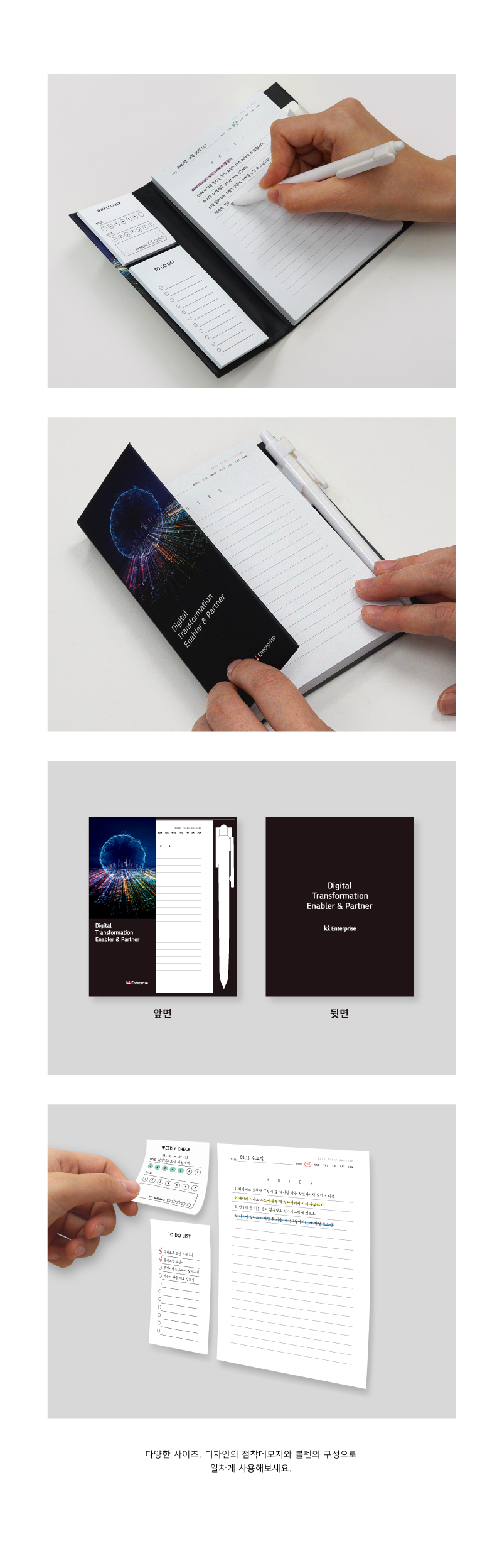 하드커버, 내지(3쪽 점착메모지), 볼펜(화이트 또는 블랙)