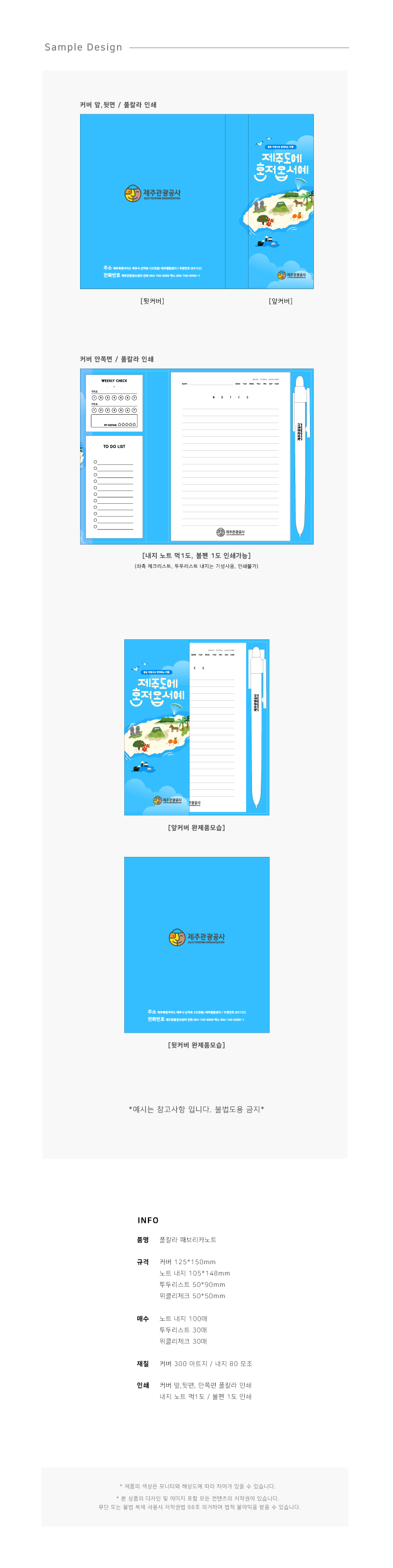 커버 앞.뒷면. 안쪽면 풀칼라 인쇄 내지 노트 먹1도. 볼펜 1도 인쇄