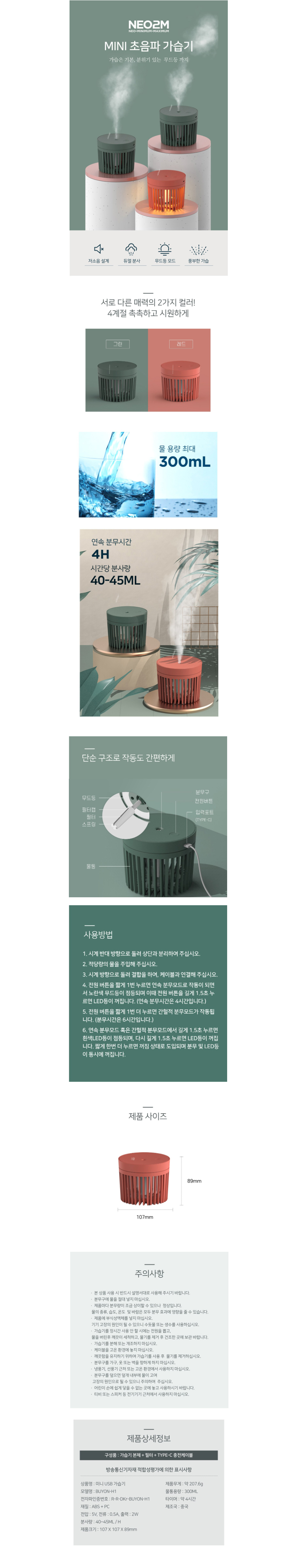• NEO2M 미니 초음파 USB가습기 H1