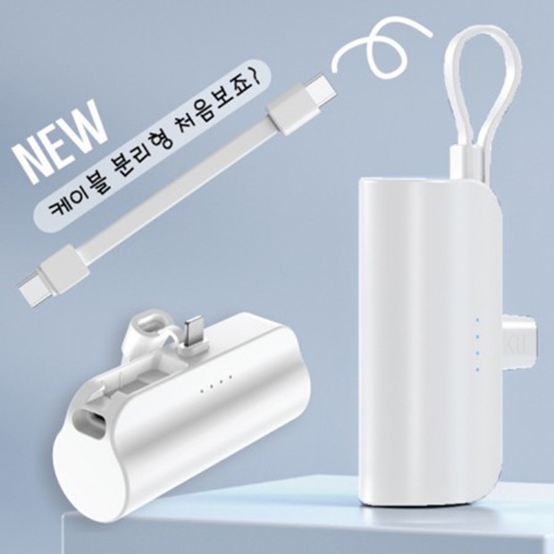 • 케이블 탈부착 도킹형 보조배터리 5000mAh_C타입/8핀겸용