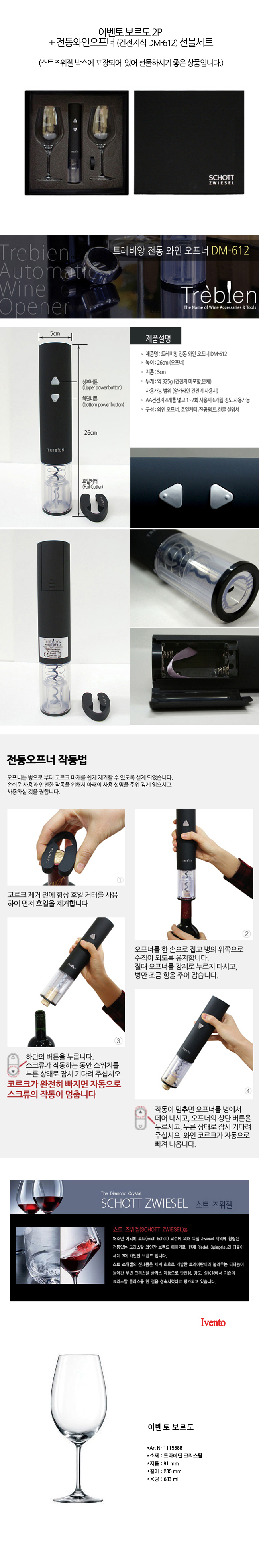 • [쇼트즈위젤] 와인 글라스 + 전동 와인오프너 DM-612