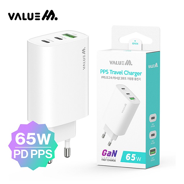 • 밸류엠 가정용 65W 3포트 GaN PPS 초고속 충전기(케이블 미포)