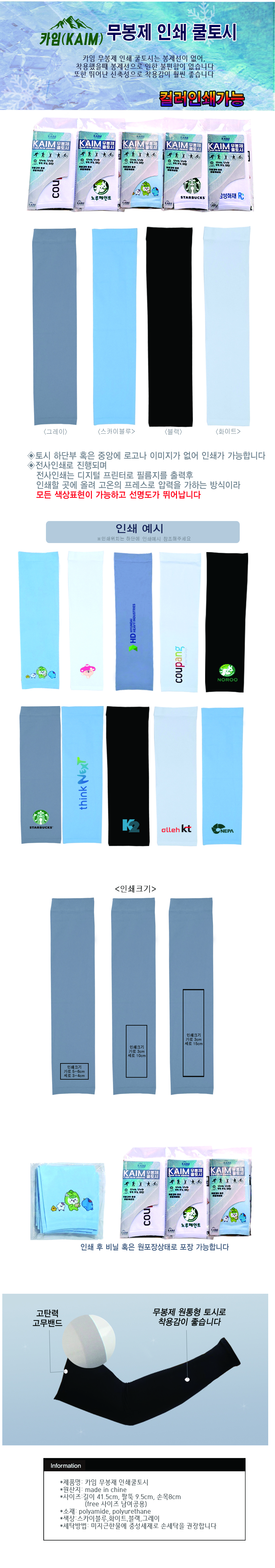 • 카임 무봉제 컬러인쇄 팔토시 인쇄토시