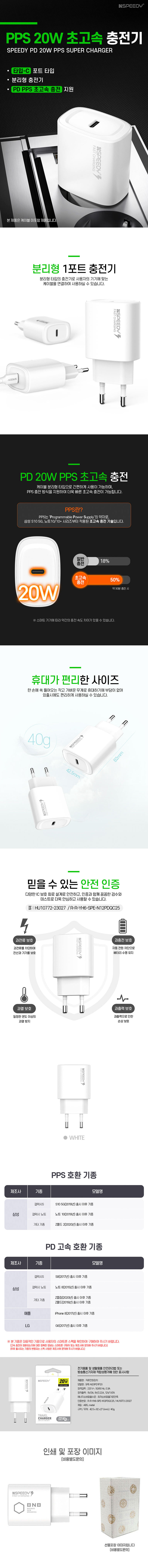 • 스피디 가정용 20W C타입 1포트 고속 분리형 충전기①(케이블 미포)