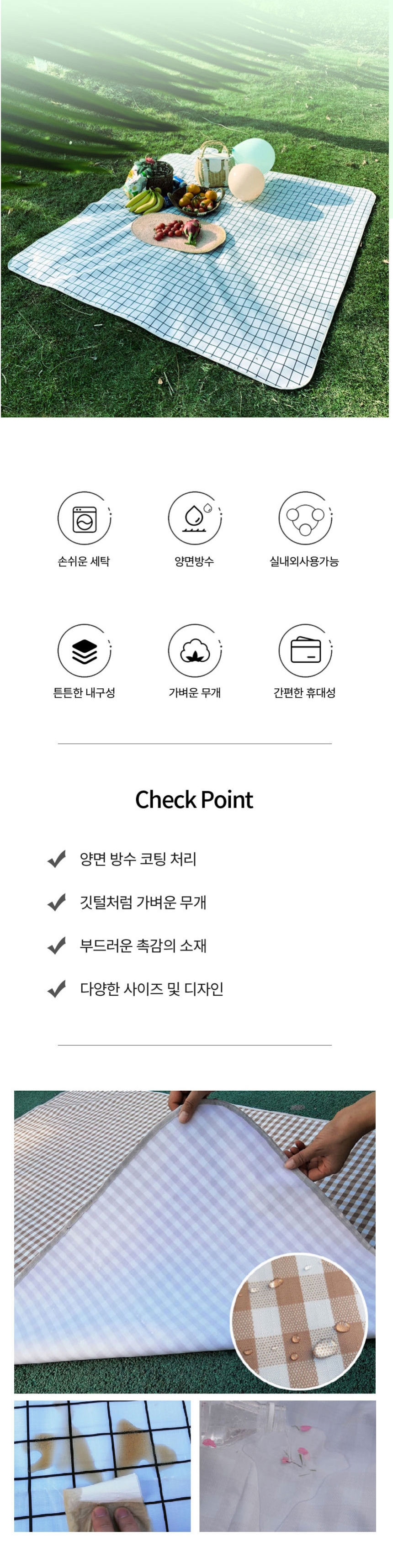 • 체크 피크닉매트 양면방수 두꺼운 돗자리 나들이 돗자리 여행용매트