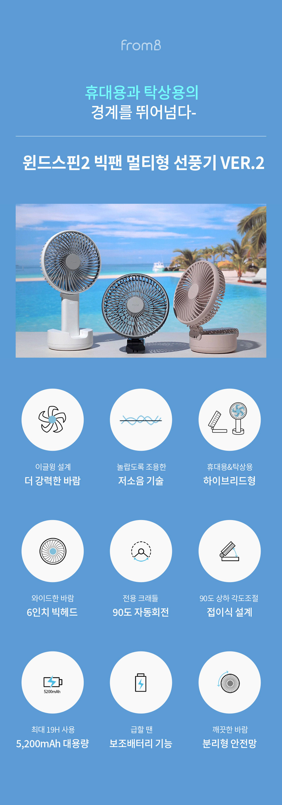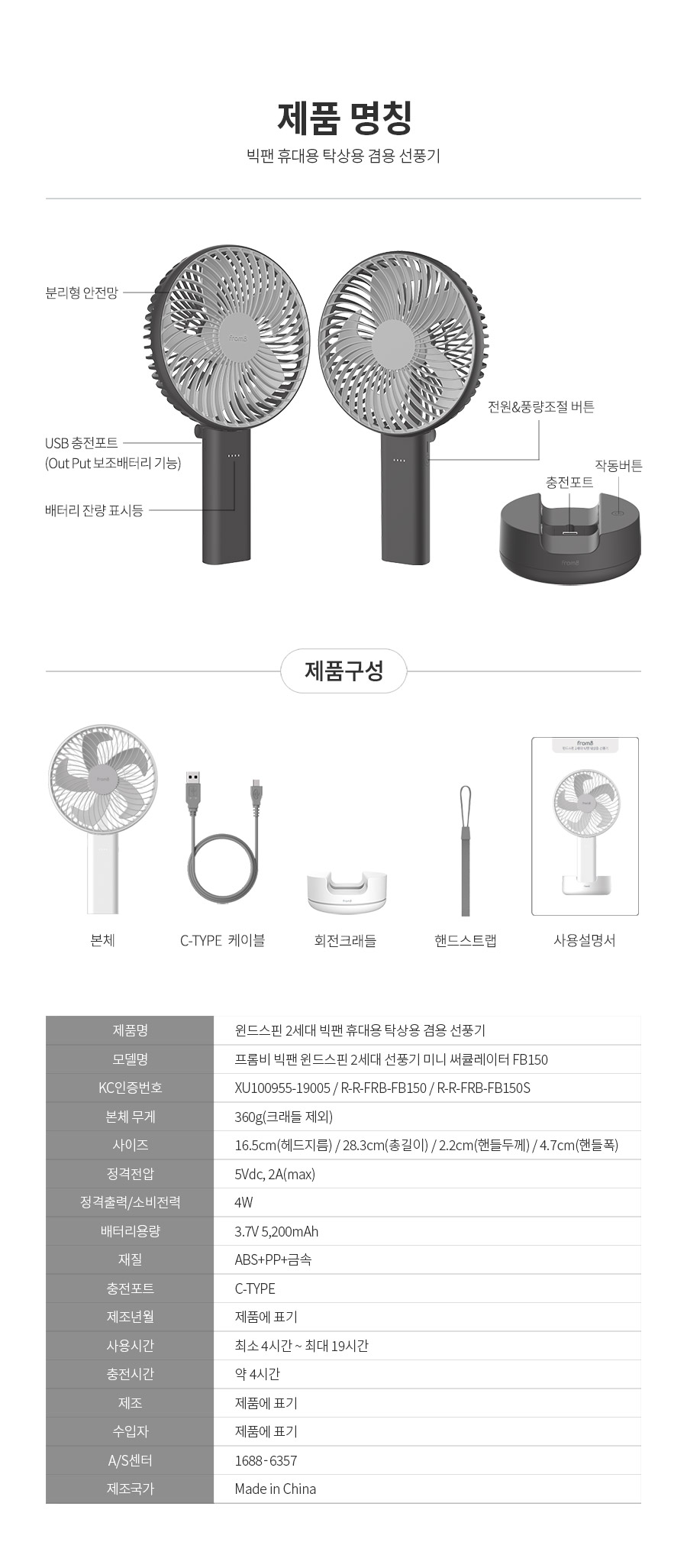 • 윈드스핀2 빅팬 휴대용겸용 탁상용선풍기 FB150
