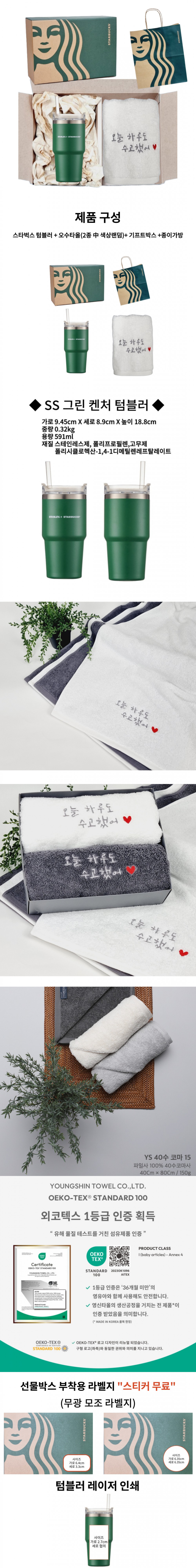 • 스타벅스 SS 스탠리 그린 켄처 텀블러 + 오수 영신 타올 호텔 수건 선물세트