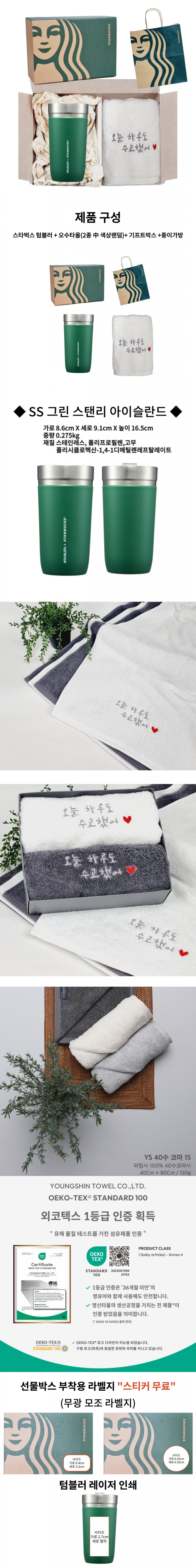 • 스타벅스 SS 그린 스탠리 아이슬란드 텀블러 + 오수 영신 타올 호텔 수건 선물세트