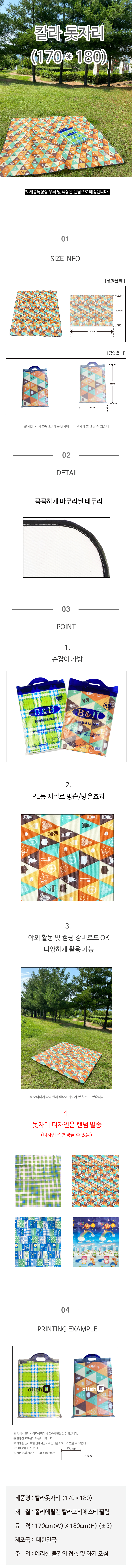 • 칼라돗자리170x180캠핑매트