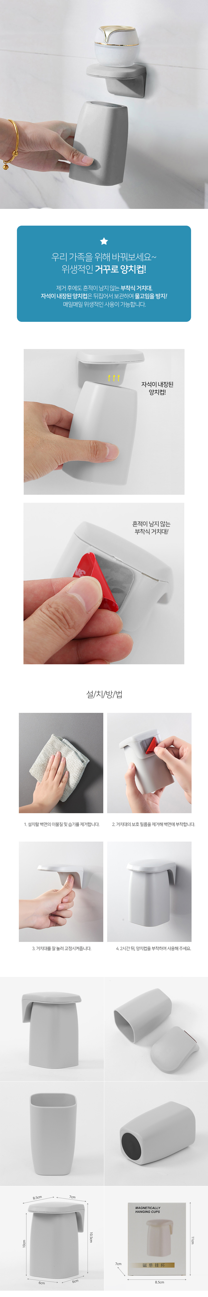 • 자석부착 거꾸로 심플 양치컵(그레이)/ 물때방지 욕실컵