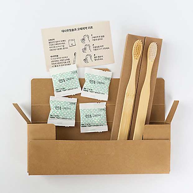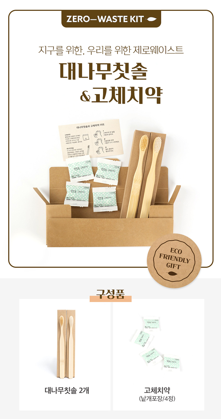 • 누반 대나무칫솔과 고체치약 세트 제로웨이스트 친환경 선물세트