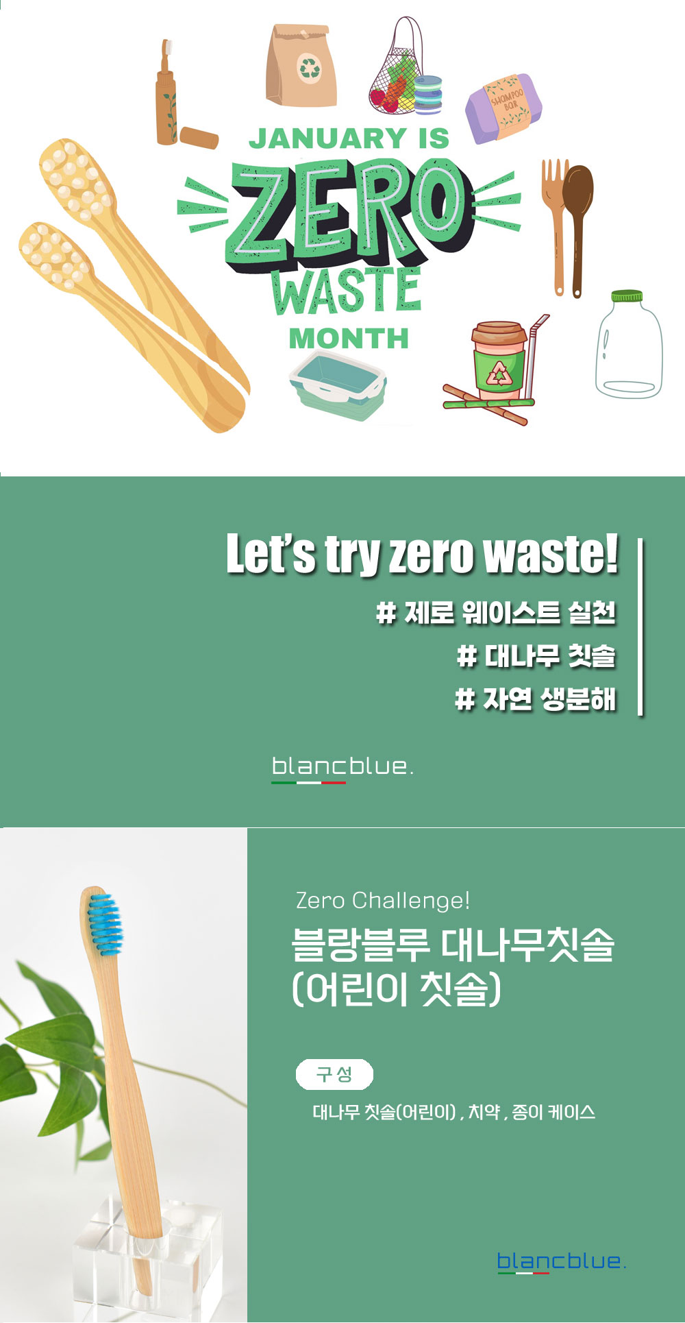 • 블랑블루 대나무칫솔+치약+생분해케이스