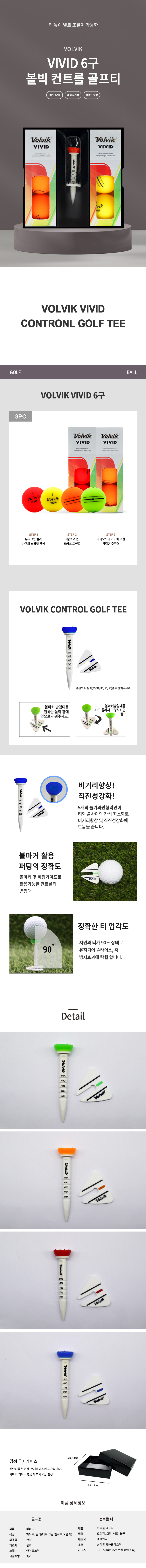 • 볼빅 비비드 6구 에이밍 컨트롤 골프티 높이 조절티세트 (3pc)