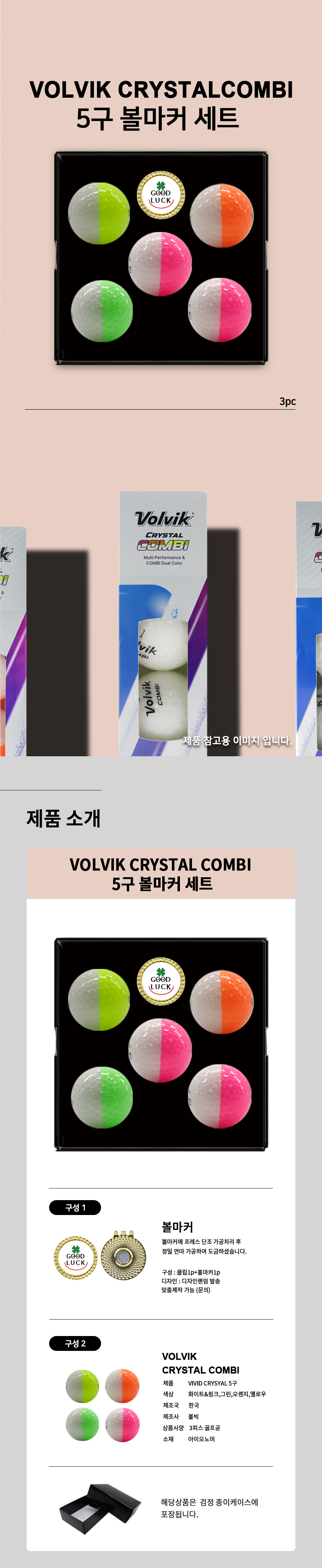 • 볼빅크리스탈 콤비 5구 볼마커세트 (3pc) 반반 골프공