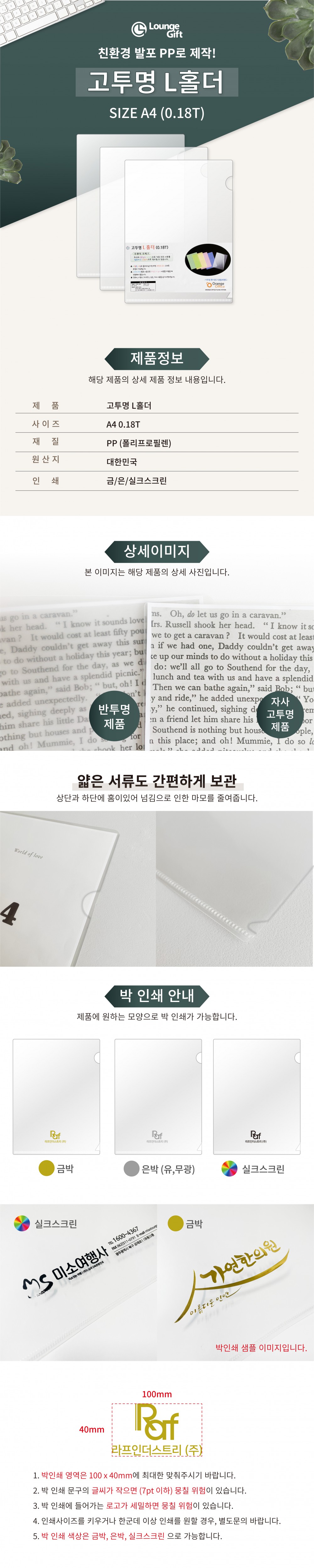 • 고투명 L홀더 화일 실크 박 인쇄포함