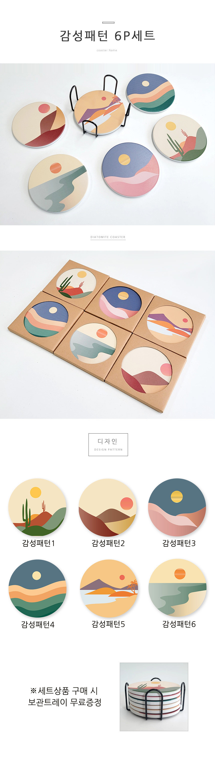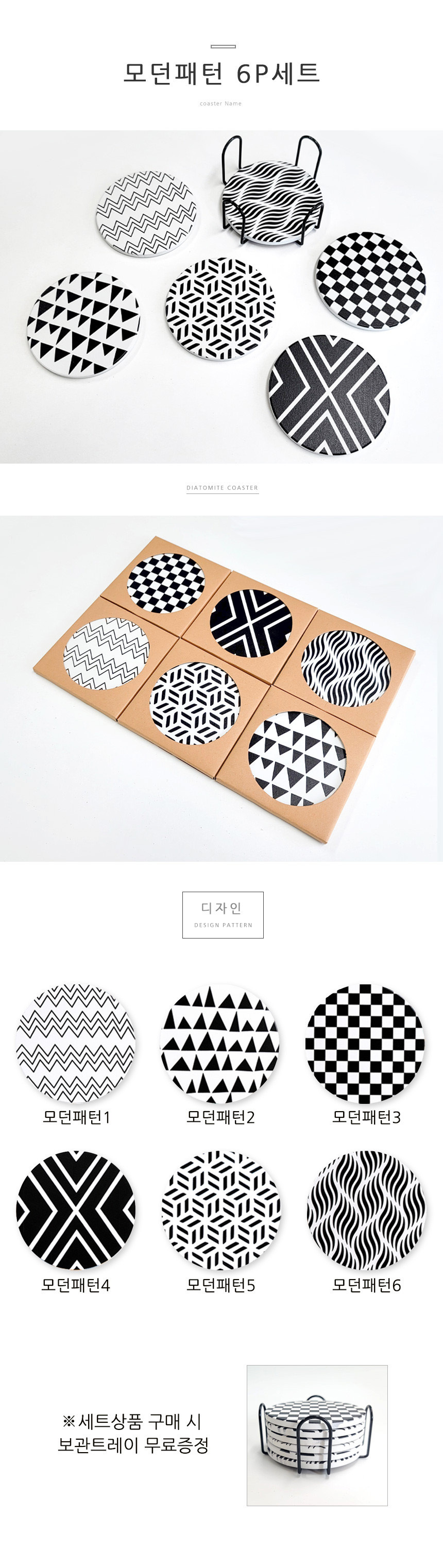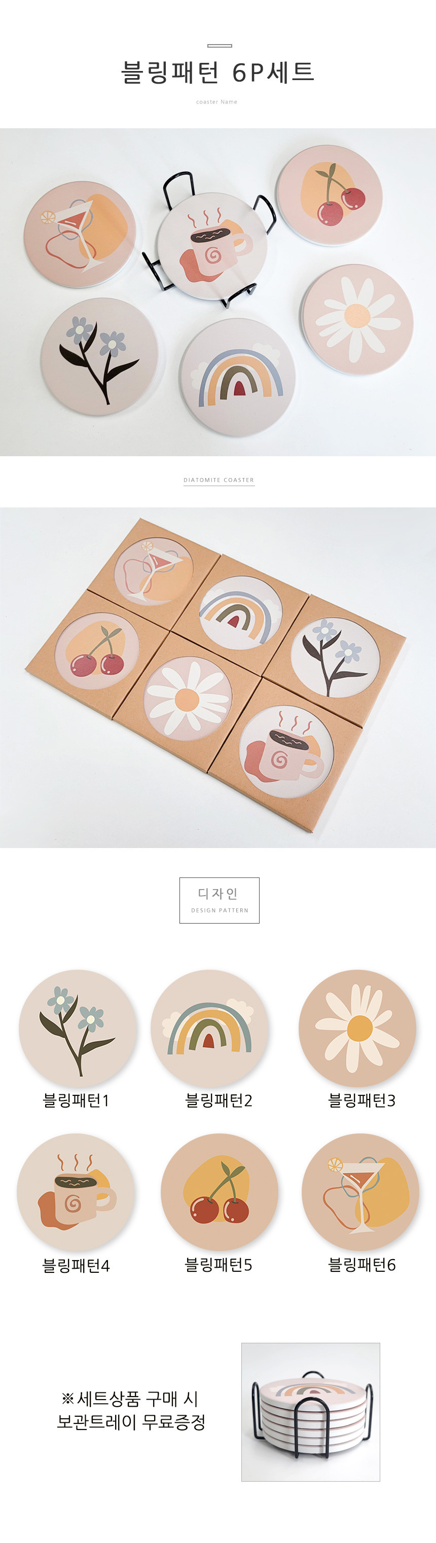 • 티코스터 6P세트 컵받침 규조토 물기흡수