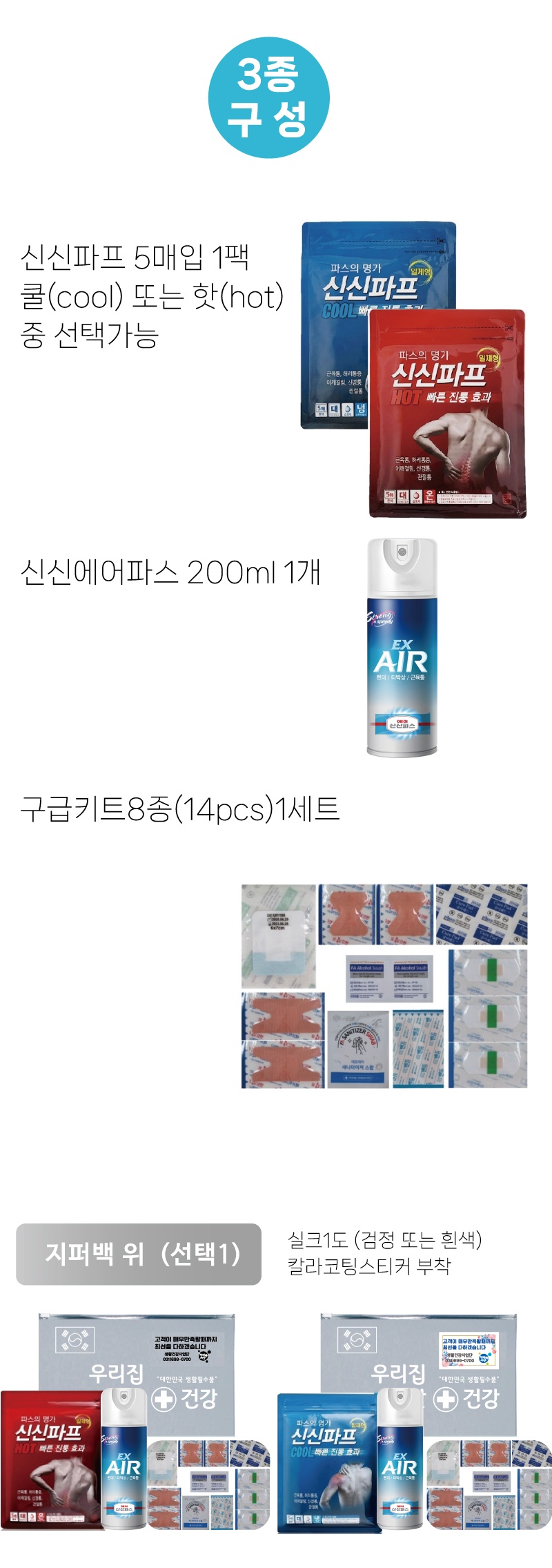 신신파스 쿨(파랑)+에어파스+구급키트,신신파스 핫(빨강)+에어파스+구급키트