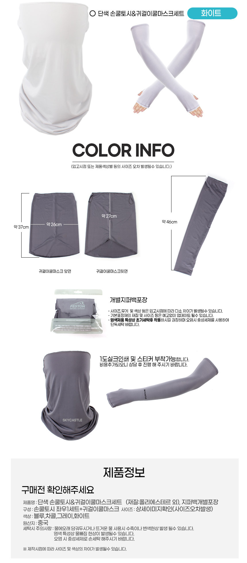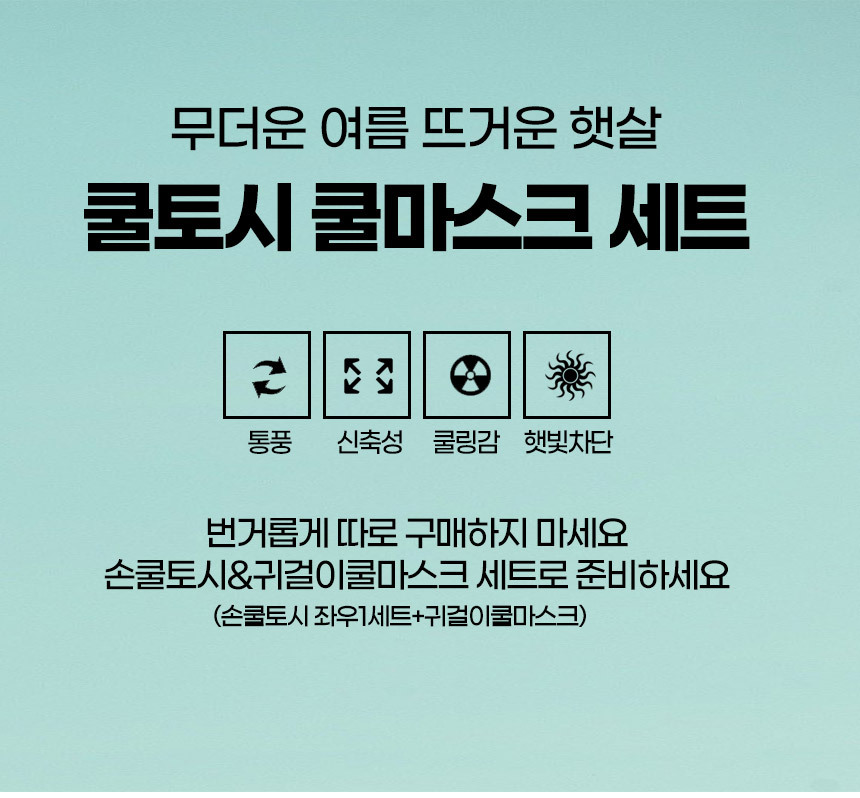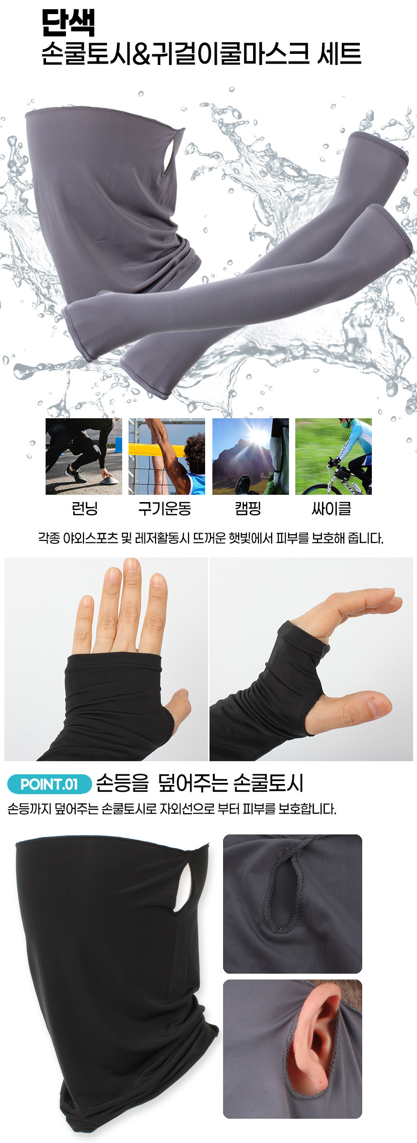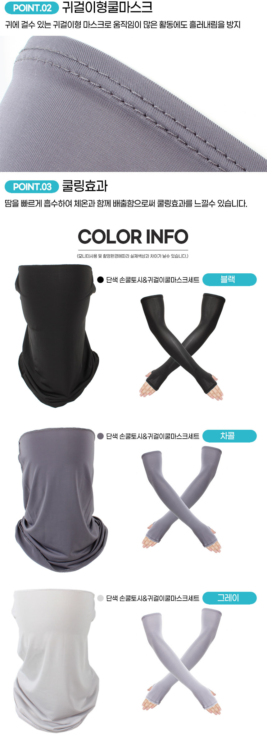 • 단색 손쿨토시 & 귀걸이 쿨마스크 세트