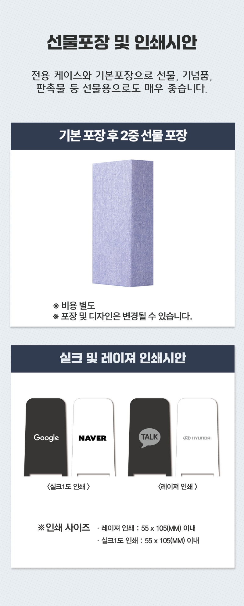 • 국내택배 배송비는 무료배송을 원칙으로 하나 제작상품에 따라 상이하게 적용될 수 있습니다.