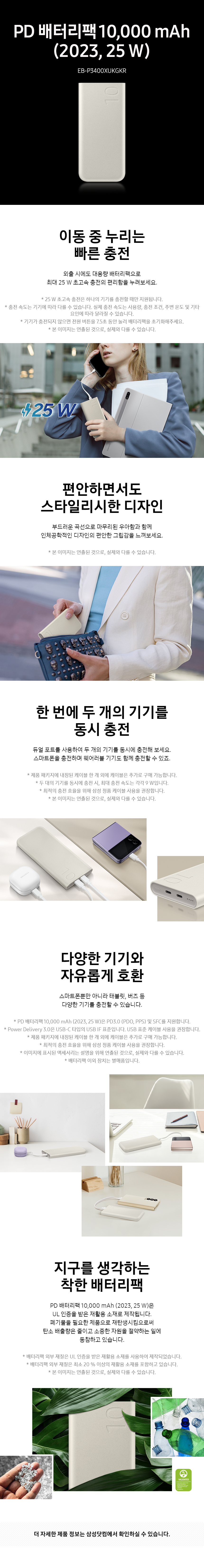 • [삼성전자] 10000mAh, 25W 초고속 충전 듀얼 보조배터리 [EB-P3400]