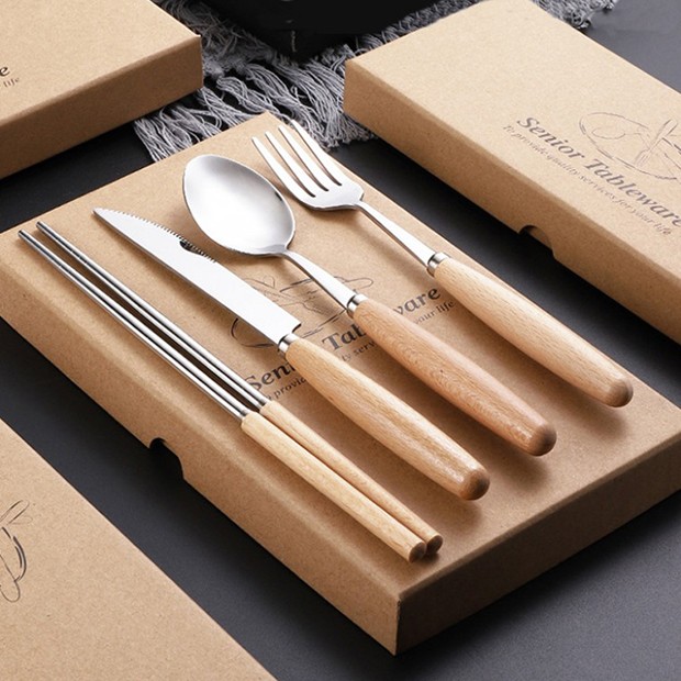 • 스테인리스 나무 손잡이 식기세트, 수저 포크 젓가락 나이프 우드 세트 선물 심플 행사품 사은품