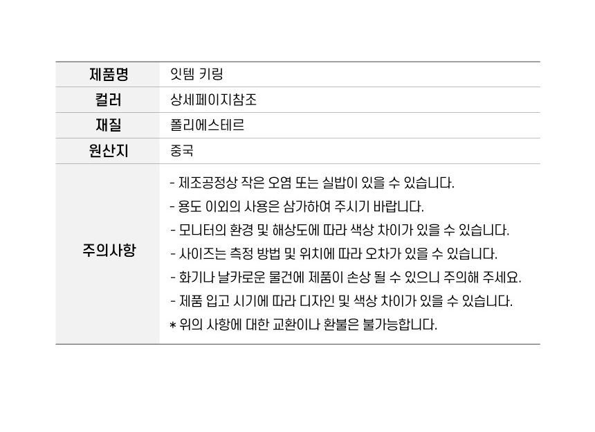 • 제품의 하자로 인한 반품 및 교환 시 배송비는 판매자가 부담합니다.