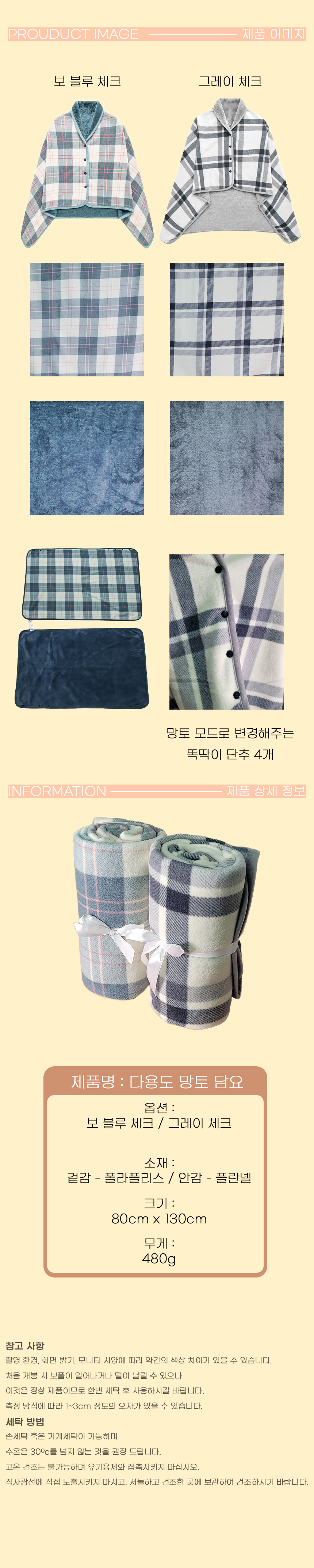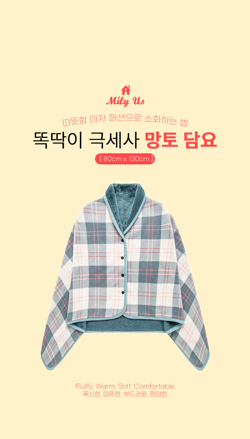 • 밀리어스 망토 담요 똑딱이 입는담요 극세사 캠핑 후드담요 80*130cm