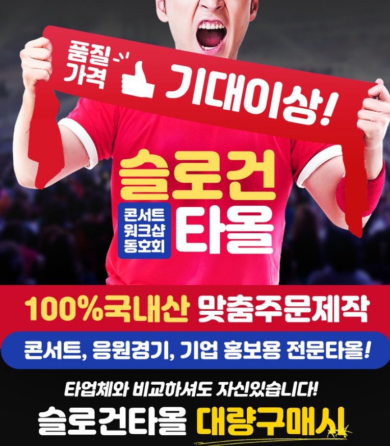• [슬로건타올제작]콘서트, 워크샵, 동호회 응원타올 10장이상