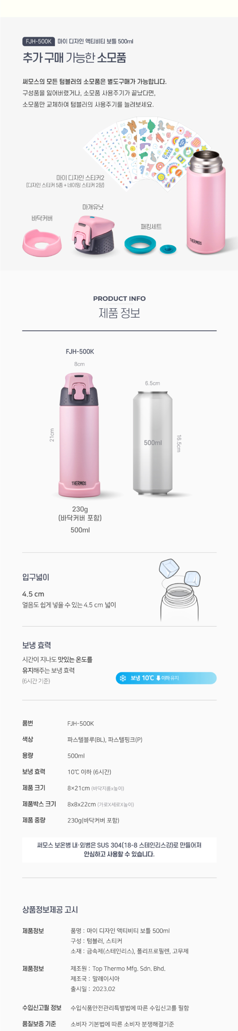 • [써모스] 마이 디자인 액티비티 보틀 500ml FJH-500K