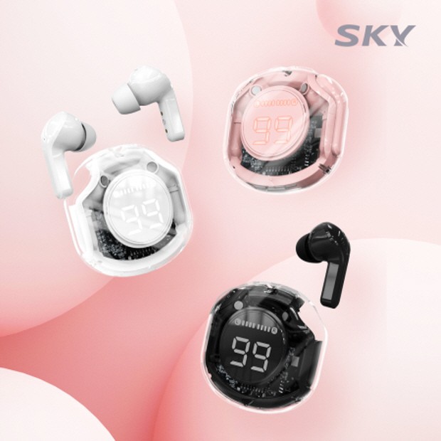 • 스카이 핏 클리어 투명 TWS 디지털 LED 블루투스 5.4 무선이어폰