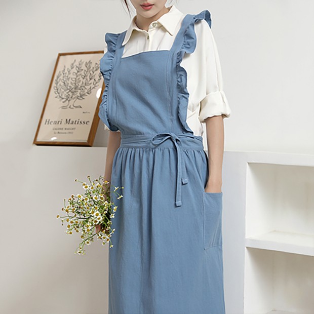 • 룩앳걸 프릴 주방 앞치마, 스타일리쉬 바리스타 원피스형 앞치마