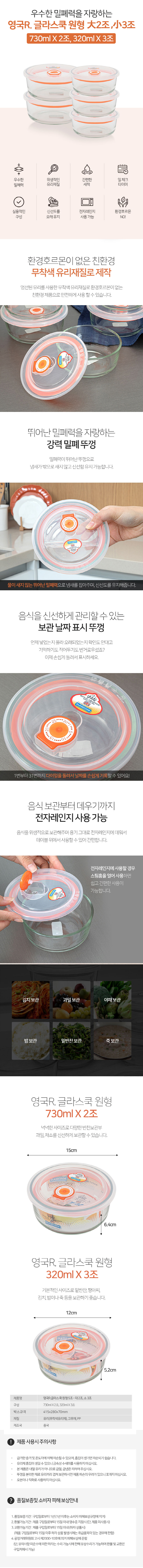 • 영국R. 글라스쿡 원형 5조 밀폐용기- 大2조, 小3조
