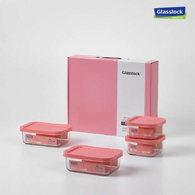 • [글라스락] 간편 캡 4조 밀폐용기(핑크)