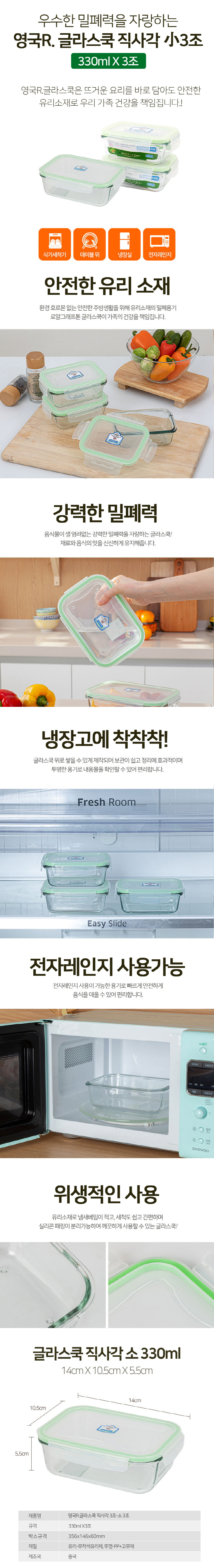 • 영국R. 글라스쿡 직사각 밀폐용기 - 小 3조