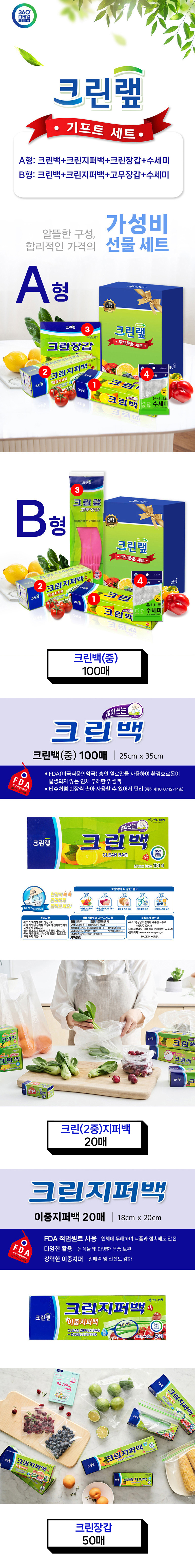 * B형 : 크린백 + 크린이중지퍼백 + 크린수세미 + 크린고무장갑