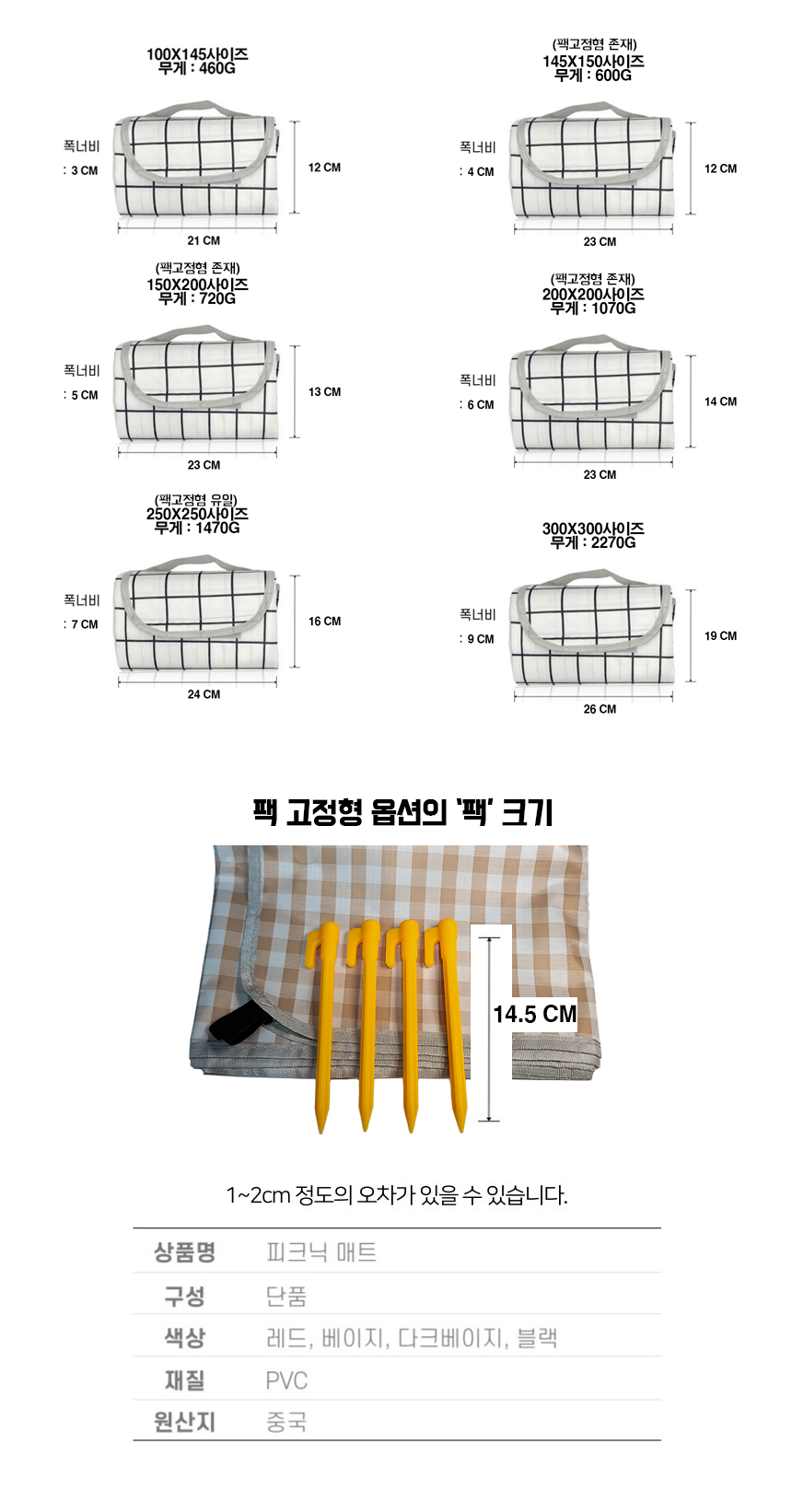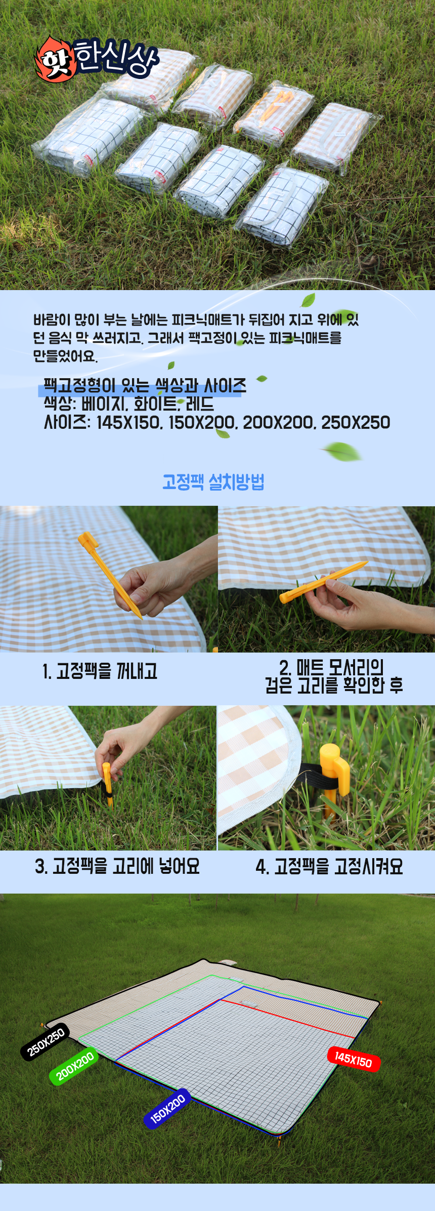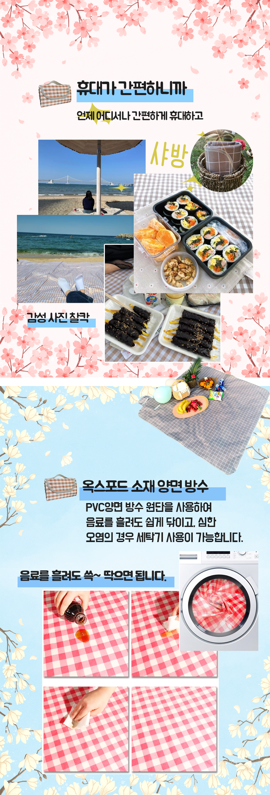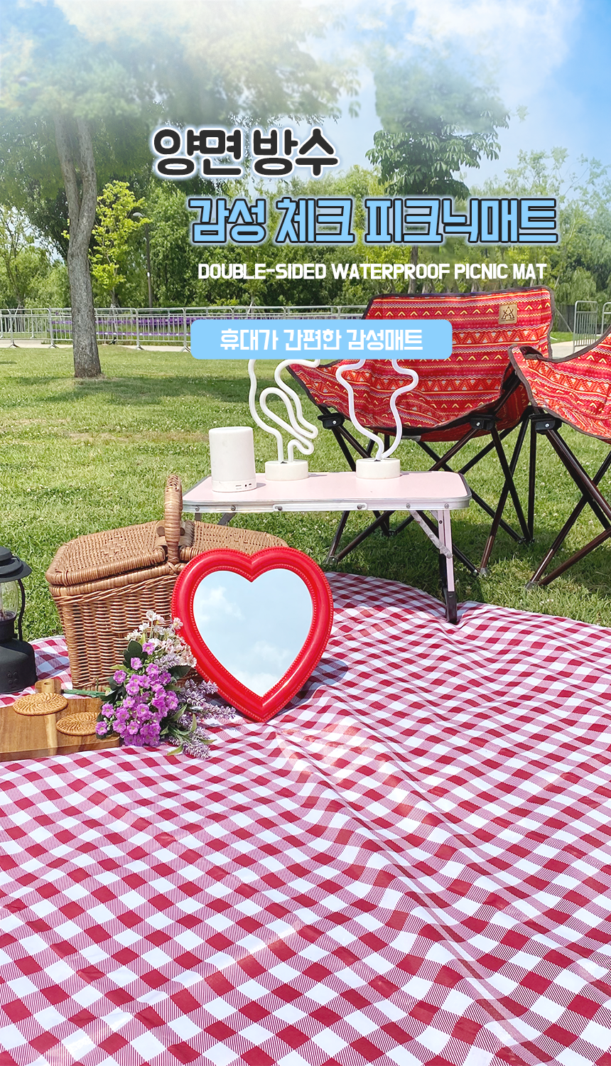 • 양면 방수 감성 체크 무늬 돗자리 피크닉 매트 100x145