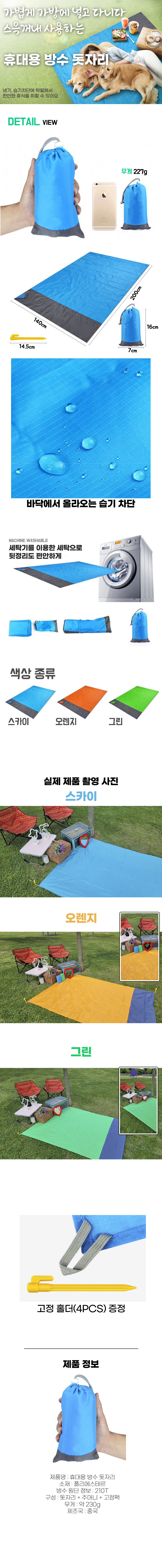 • 가벼운 휴대용 방수 돗자리 팩고정 등산 낚시 소풍 매트