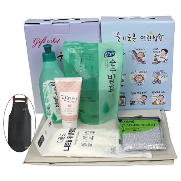 • 앞치마+주방세제 용기+리필 핸드에센스+니트릴장갑+크린랩수세미