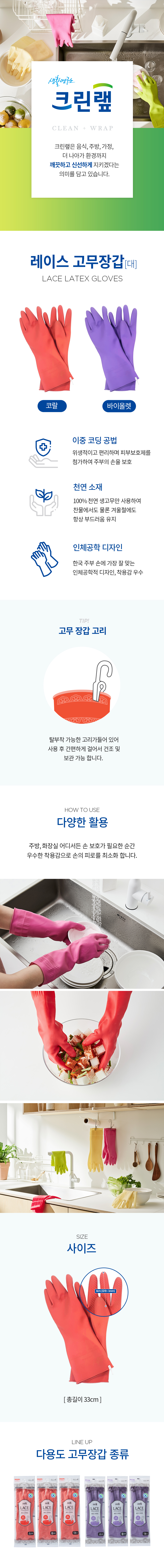 • [크린랩] 고무장갑 레이스 코랄 (대)