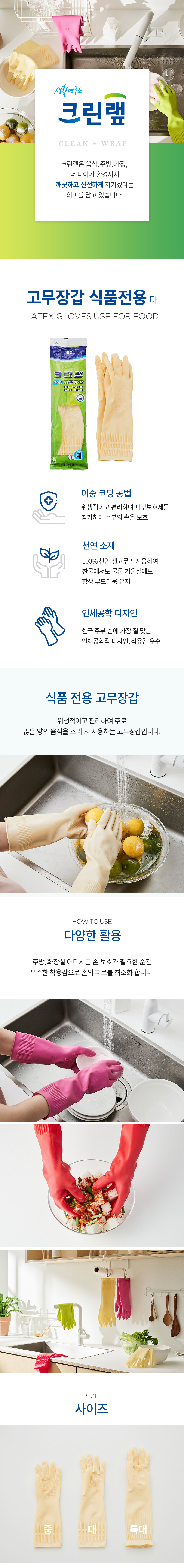 • [크린랩] 고무장갑 식품전용 (대) 주방용품