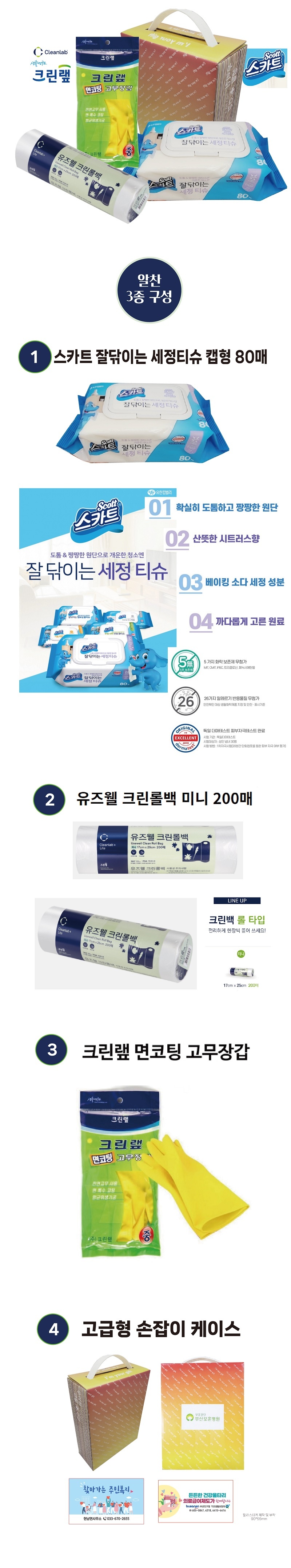 • 스카트 유즈웰 크린랩 3종세트 A (세정티슈+크린롤백+고무장갑)