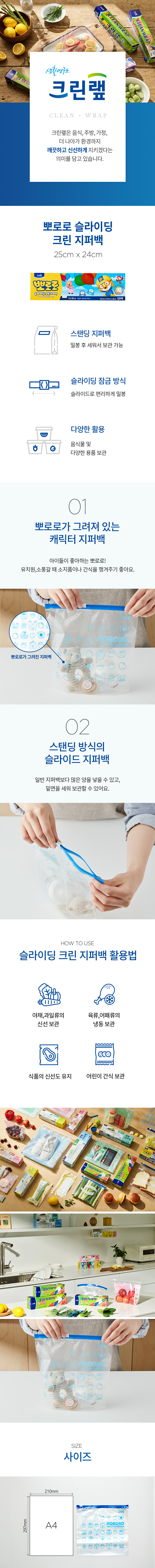 • 크린랩 뽀로로 슬라이딩 지퍼백 대 25x24x12매
