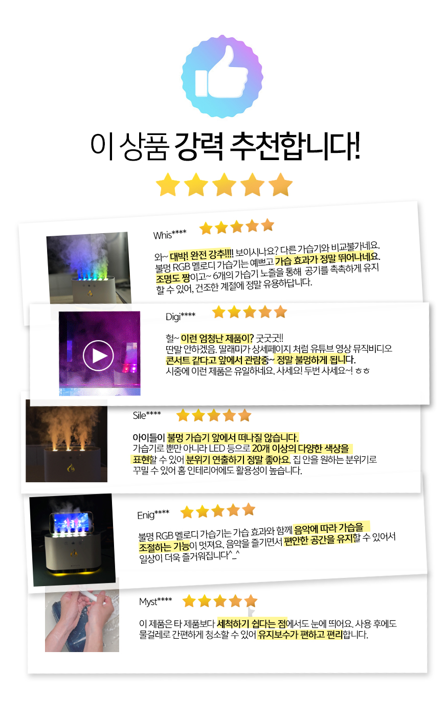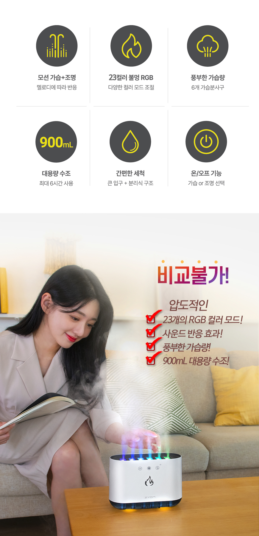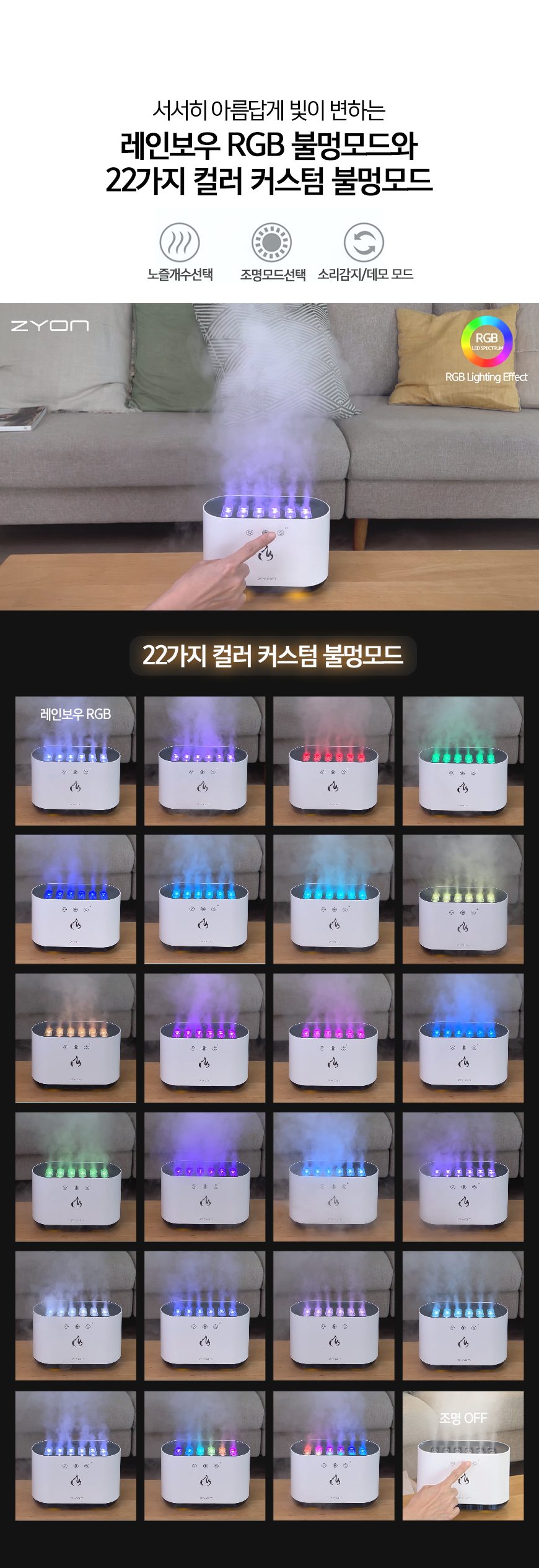 • 불멍 RGB 멜로디 가습기 사운드멍 무드등 zy-hrm500