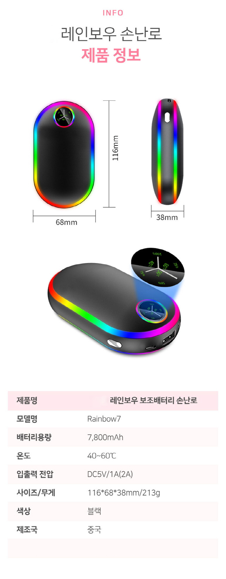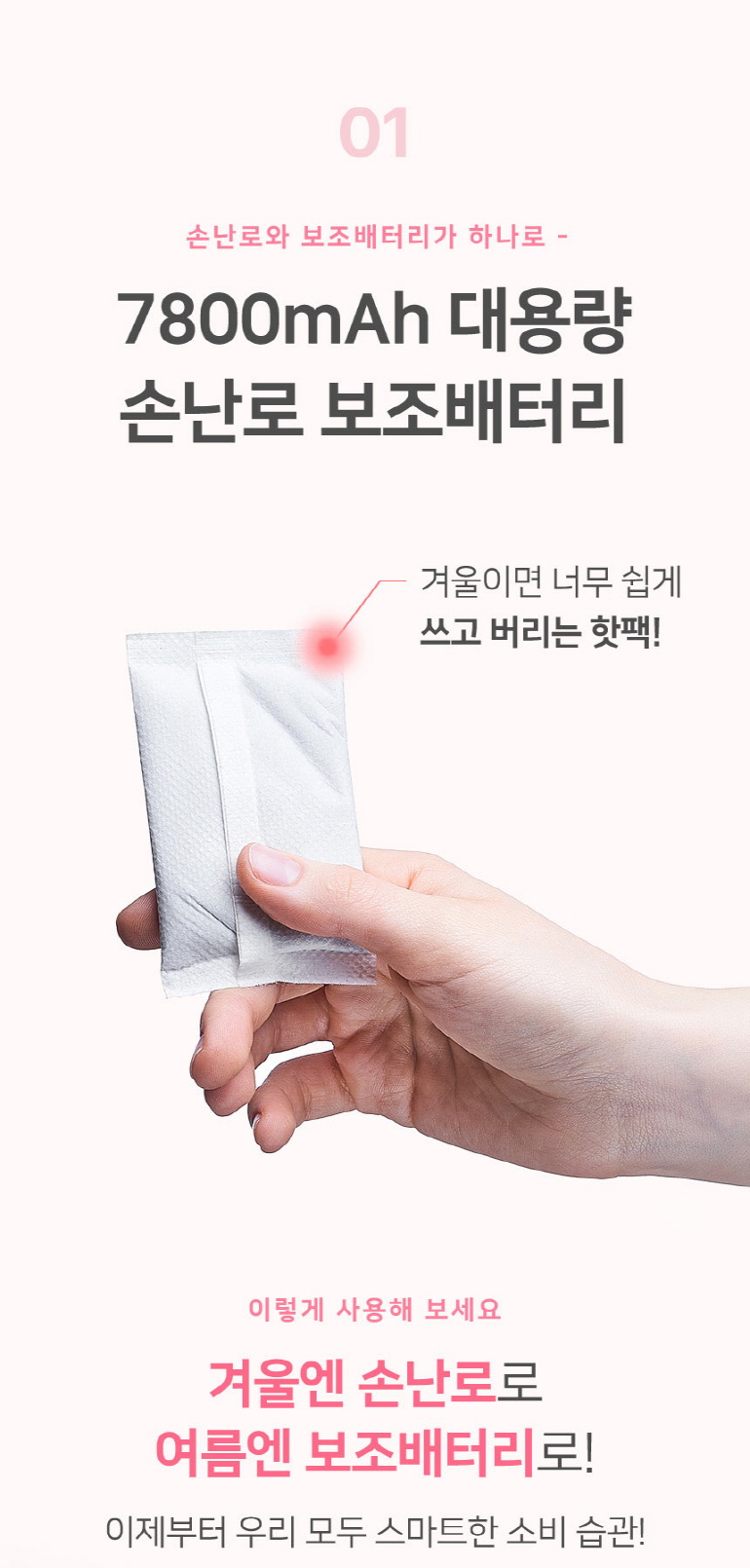 • 충전식 손난로 보조배터리 USB 7800mAh