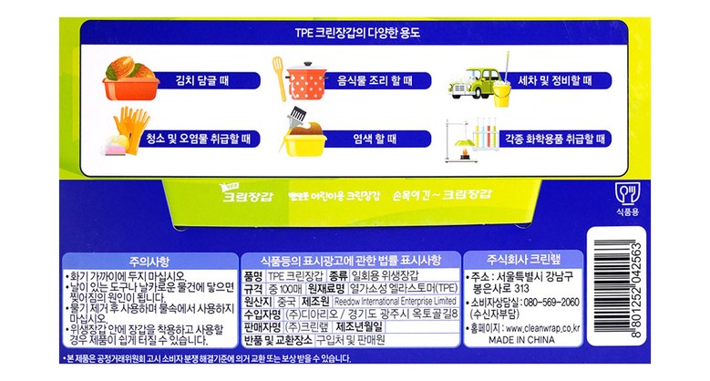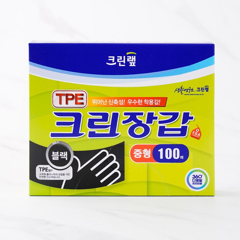 • 크린랩 크린장갑 TPE 100매 블랙 중